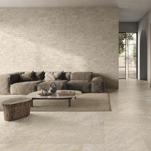 Créez une atmosphère minérale unique avec ce carrelage inspiré des briques en pierre. Les motifs irréguliers apportent profondément du relief et du mouvement à vos murs et sols, tandis que le grès-cérame garantit solidité et entretien sans effort.