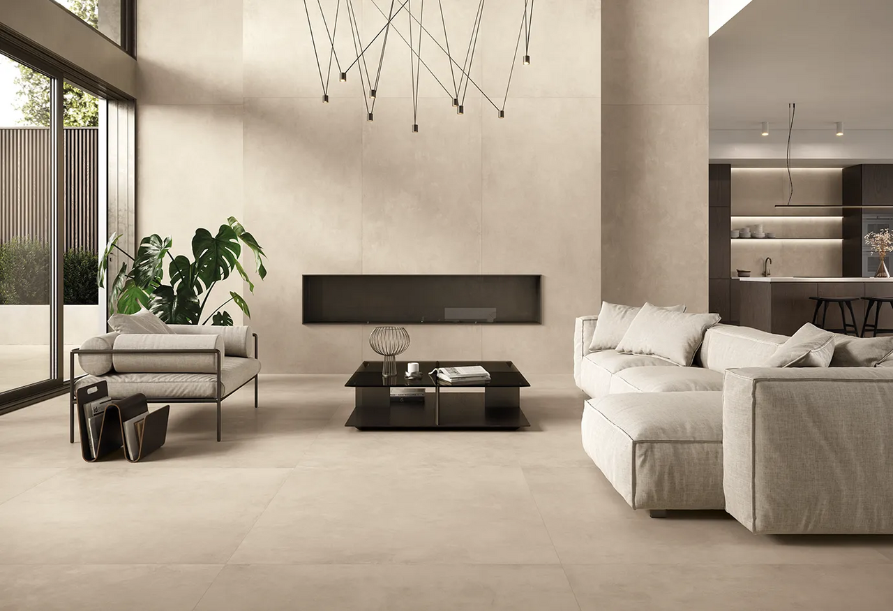 Le carrelage effet béton ciré offre un style moderne, épuré et industriel, idéal pour habiller vos sols ou murs avec élégance.