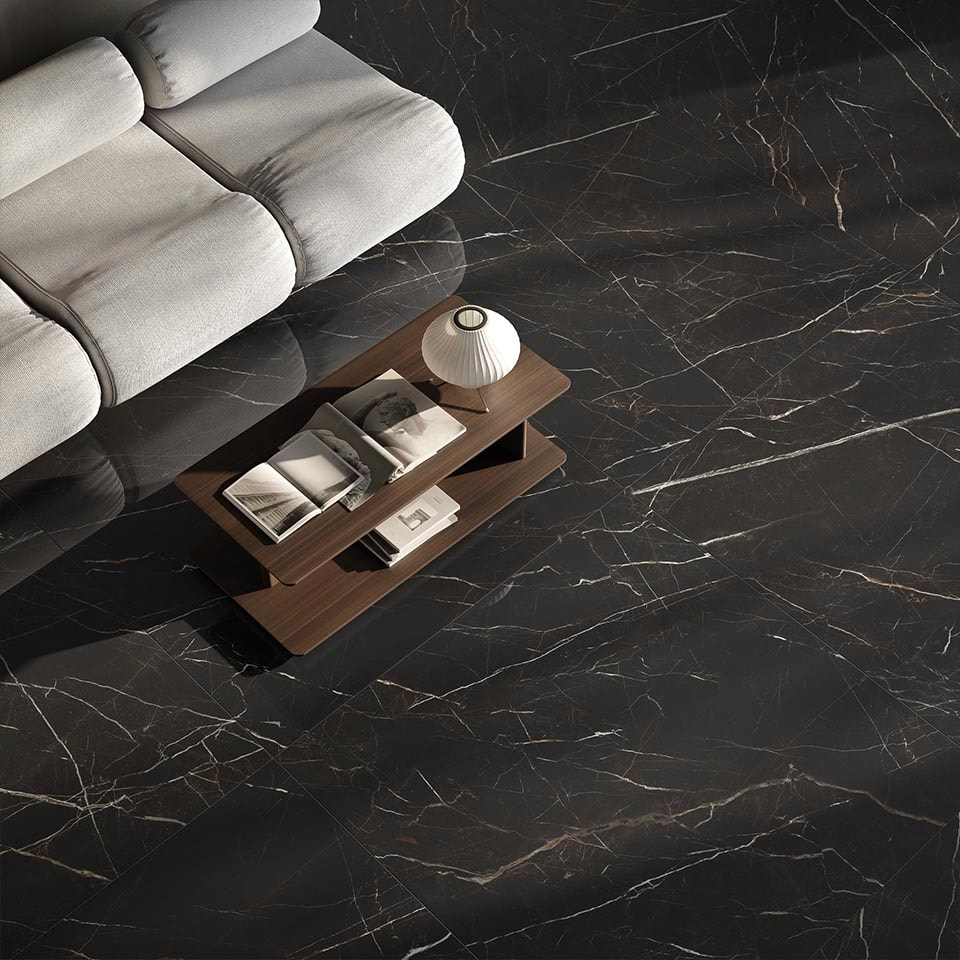 Le carrelage effet marbre noir apporte à votre intérieur une élégance profonde et sophistiquée : ses veines élégantes sur fond sombre donnent un rendu chic et contemporain, parfait pour un style haut de gamme.